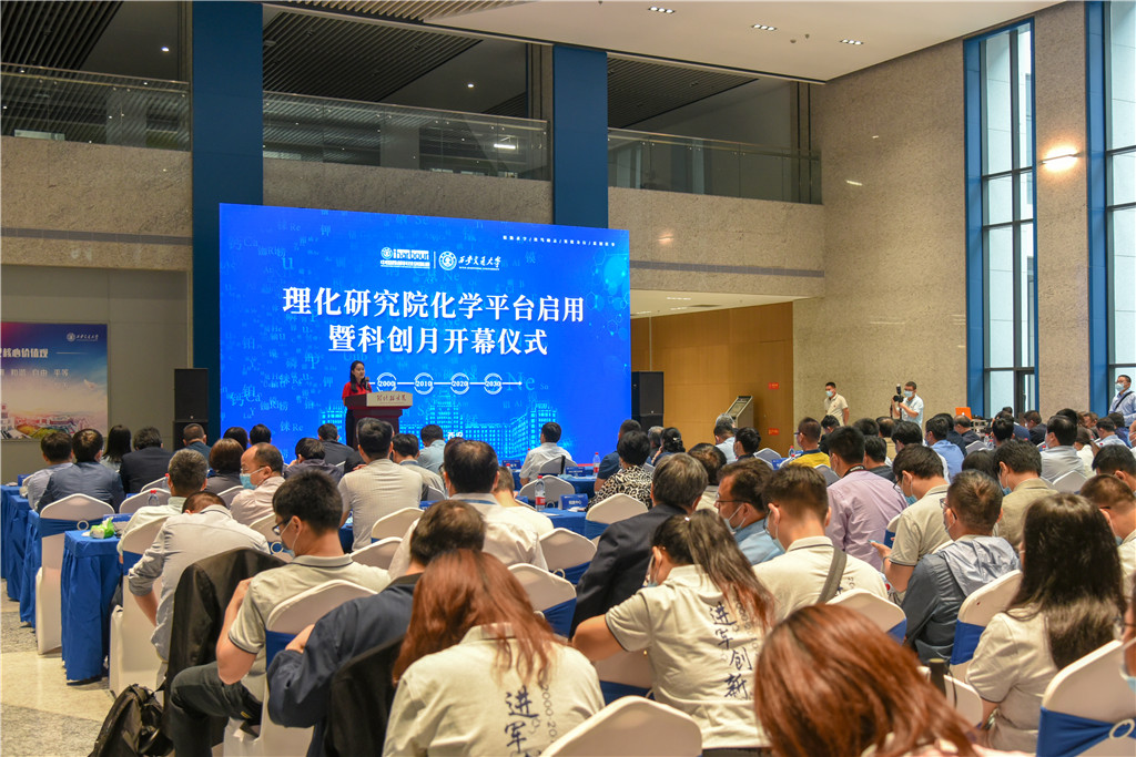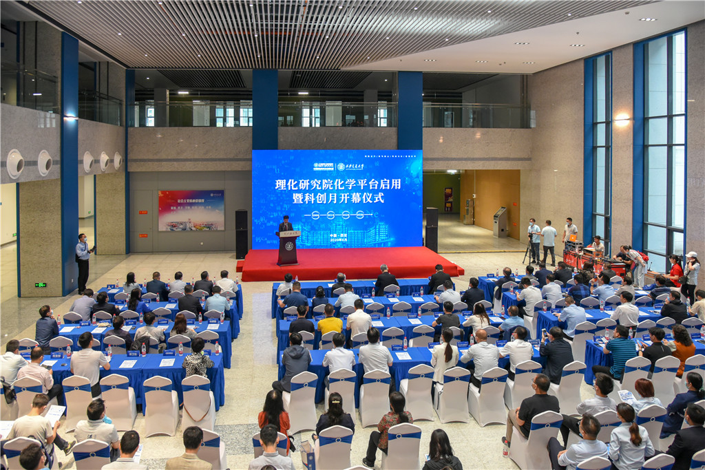 2019年5月18日,理化研究院入驻创新港,经过一年的紧张建设,研究院化学平台全面启用。6月16日上午11时,研究院在泓润楼西门大厅举行了化学平台启用暨科创月开幕仪式。西安交通大学党委书记张迈曾,校长王树国,副校长荣命哲、王铁军,校党委副书记赵军武,校党委常委、宣传部部长成进,陕西省工信厅、沣西新城西咸新区创新港管理服务办公室、陕西省汽车工业协会、陕西省汽车产业发展研究中心、全通集团、中核陕西铀浓缩有限公司、山东京博集团、宇电新能源汽车集团、中化蓝天集团等企事业单位代表,以及学校职能部门负责人、兄弟学院领导、师生代表200余人共同见证这一历史时刻。