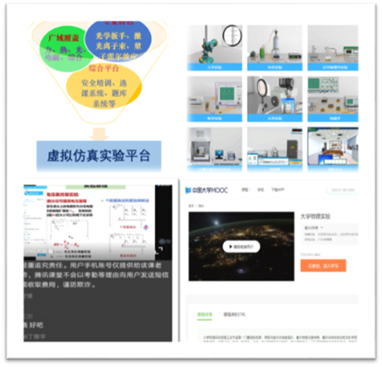 线上教学与师生随堂互动(左下);大学物理实验慕课(右下)。