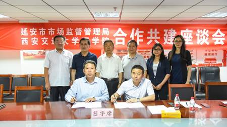7月2日,西安交通大学理学院党委书记郑元锁教授、副院长张志成教授、化学支部书记张雯教授等一行六人赴延安市市场监督管理局,就双方科教合作与管理局党组书记、局长李怀清,副局长王怀瑞、调研员王延庆及相关科室、直属单位负责同志进行了深入交流,签订了合作协议,落实了双方深层次合作、资源共享和互利共赢的政策保障。