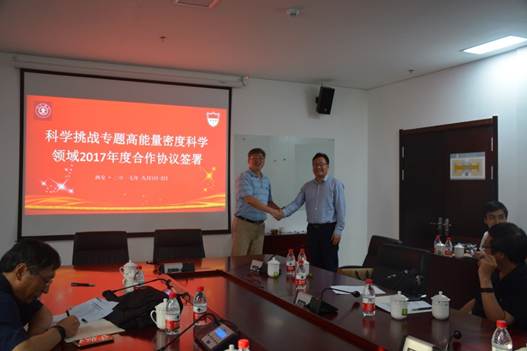 项目首席科学家朱少平研究员与西安交通大学理学院赵永涛教授签署2017年项目合作协议