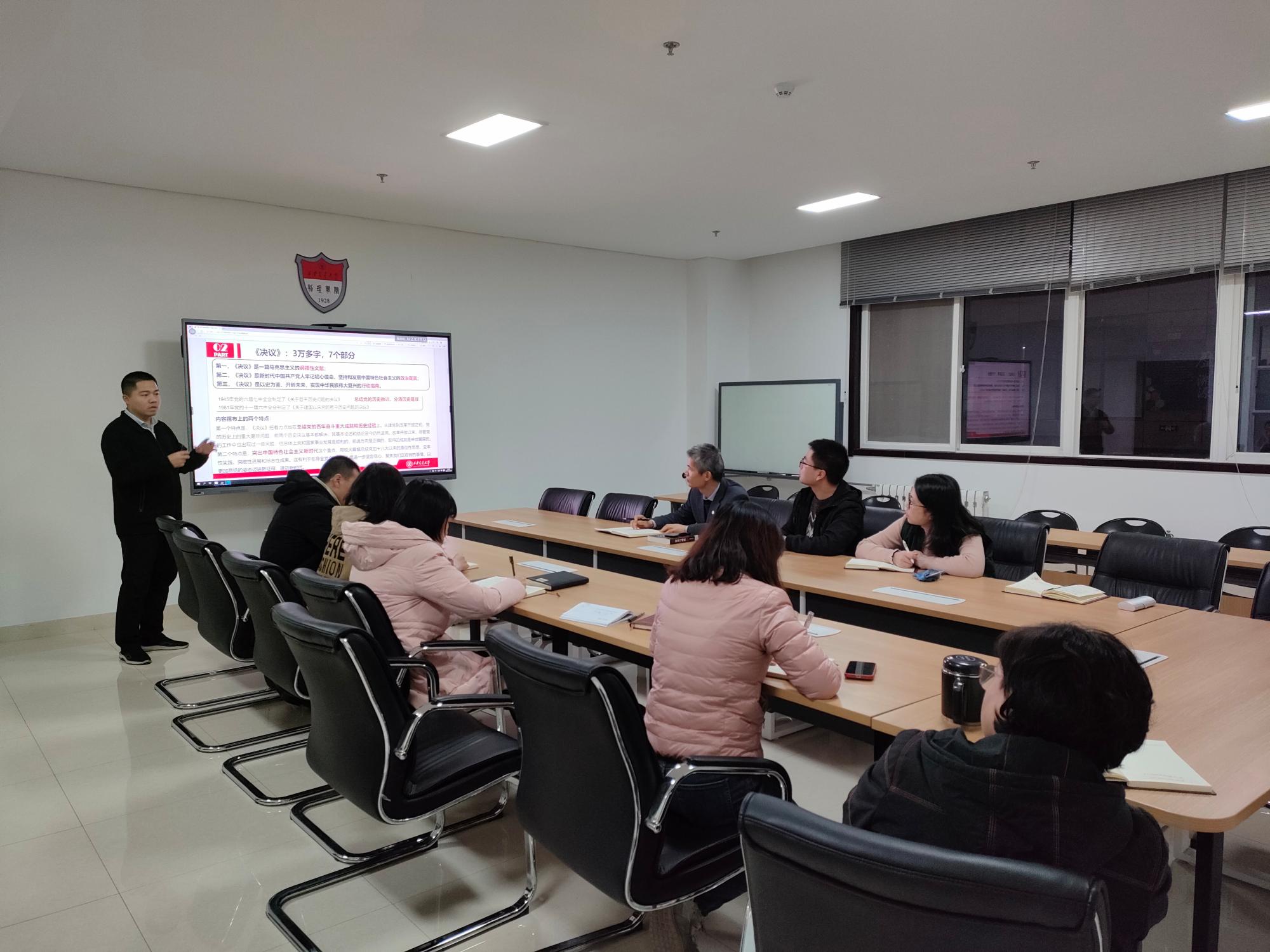 会议伊始,学生微宣讲团团长倪蒙受邀走进支部开展党的十九届六中全会精神宣讲。党的十九届六中全会在北京召开,审议通过了《中共中央关于党的百年奋斗重大成就和历史经验的决议》。《决议》深刻揭示了“过去我们为什么能够成功、未来我们怎样才能继续成功”。倪蒙结合我校对云南省保山市施甸县的结对帮扶案例,生动阐述了交大人在推进全面小康路上可歌可泣的故事,用青年之声讲述党的百年成就和历史经验。