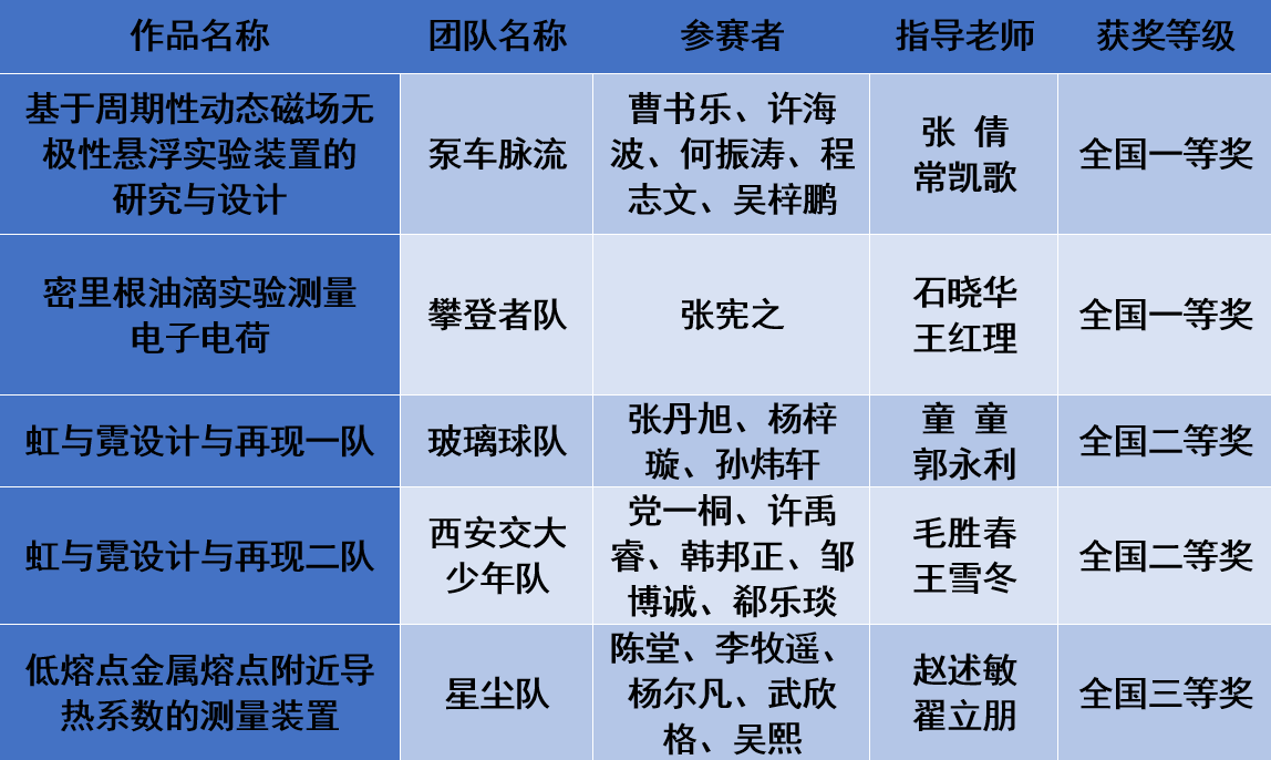 学校历来高度重视学科竞赛等各类创新创业活动。此次成绩的获得离不开实践教学中心、教务处等学校各职能部门的大力支持。比赛伊始,3308维多利亚线路检测中心高度重视,由物理实验教学中心具体组织各参赛队经过周末培训、校赛选拔、校内集训、实战演练及答辩等环节,按竞赛组委会要求组织选拔5队参赛。指导教师和学生积极备战,经历近180天的高难度、大负荷的培训和鏖战,最终迎来可喜成果。命题赛道,泵车脉流队“基于周期性动态磁场无极性磁悬浮实验装置的研究与设计”获全国一等奖;玻璃球队与西安交大少年队“虹与霓设计与再现”双获全国二等奖;讲课赛道,攀登者队“密里根油滴法测电子电荷”获全国一等奖;自选赛道,星尘队“低熔点金属熔点附近导热系数的测量装置”获全国三等奖。最终取得我校在该赛事上获奖等级和类项的双突破,同时我校被大赛组委会评为“优秀组织单位”。