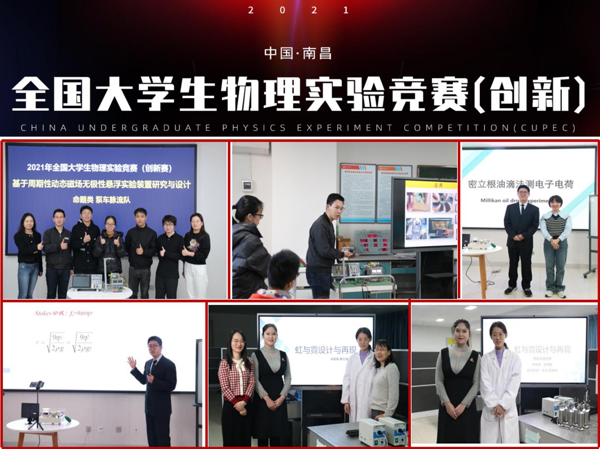 全国大学生物理实验竞赛(China Undergraduate Physics Experiment Competition,简称CUPEC)是由国家级实验教学示范中心联席会物理学科组、全国高校实验物理教学研究会、中国物理学会物理教学指导委员会联合主办,是入选2020全国普通高校大学生竞赛排行榜的唯一物理类竞赛,该竞赛旨在提高参赛大学生的创新能力、协作精神、动手能力。2021年大赛共有命题类、讲课类和自选类三种赛道形式,来自全国四百多所高校的1587支参赛队同台竞技,约900名高校专家共同参与评审,最终经线上答辩决出约10%的参赛项目获得全国一等奖。