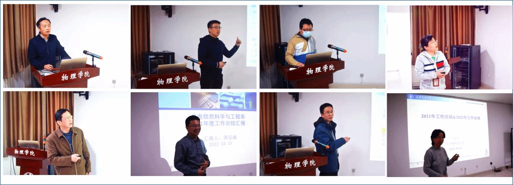 各研究所所长、系所中心主任按照学院考核工作要求,结合各单位工作实际和岗位职责,详细汇报个人及单位2021年度主要工作,重点汇报特色创新工作业绩和2022年工作要点。物质所强化科研团队建设,发挥学术带头人作用,在科研项目获批、科研到款方面进步明显;光学所充分发挥科研优势,抓住人才和项目,在人才培养和引进、科研到款方面成效显著;理论所坚持开展基础教学和基础理论研究,承担基础理论课教学任务,在基础课程、核心课程教育以及基础研究方面做出了应有贡献;材料物理系以材料物理国家一流专业建设为重点,扎实开展教学、课程教材以及实习基地建设等,取得新的进展;应用物理系扎实做好教师教学以及学生的日常管理工作,保障教学工作高质量开展;光信息系重点推进一流本科专业建设,在一流课程、教学成果奖申报等方面取得实绩;物理实验中心做好物理实验教学工作,创造性地推进科普工作,大力建设科普场馆和文化展示厅;大学物理部统筹安排大面积教学工作的同时,积极开展教学团队、教学改革、教改项目、课程思政等工作,教学综合实力不断增强,人才队伍建设成效显著。大家在汇报工作业绩的同时积极建言献策,指出在院务公开、高效决策、凝聚团结、教学安排等方面的不足,同时汇报2022年重点工作计划。