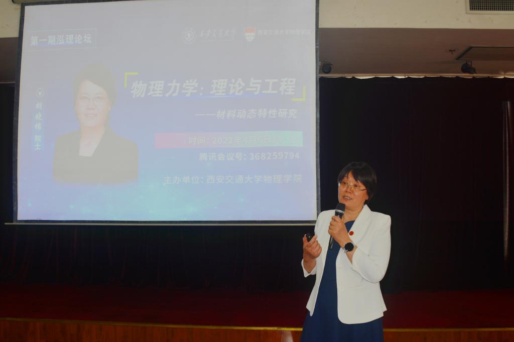 胡晓棉院士做了题为《物理力学:理论与工程——材料动态特性研究》的学术报告。她深情回顾了在西安交通大学求学的点滴经历和科学研究工作的心路历程;围绕报告主题,从研究方向、学科特色、应用背景、应用条件等方面深入阐释物理力学在理论研究与工程实际结合中不断发展的基本原理及研究方法。