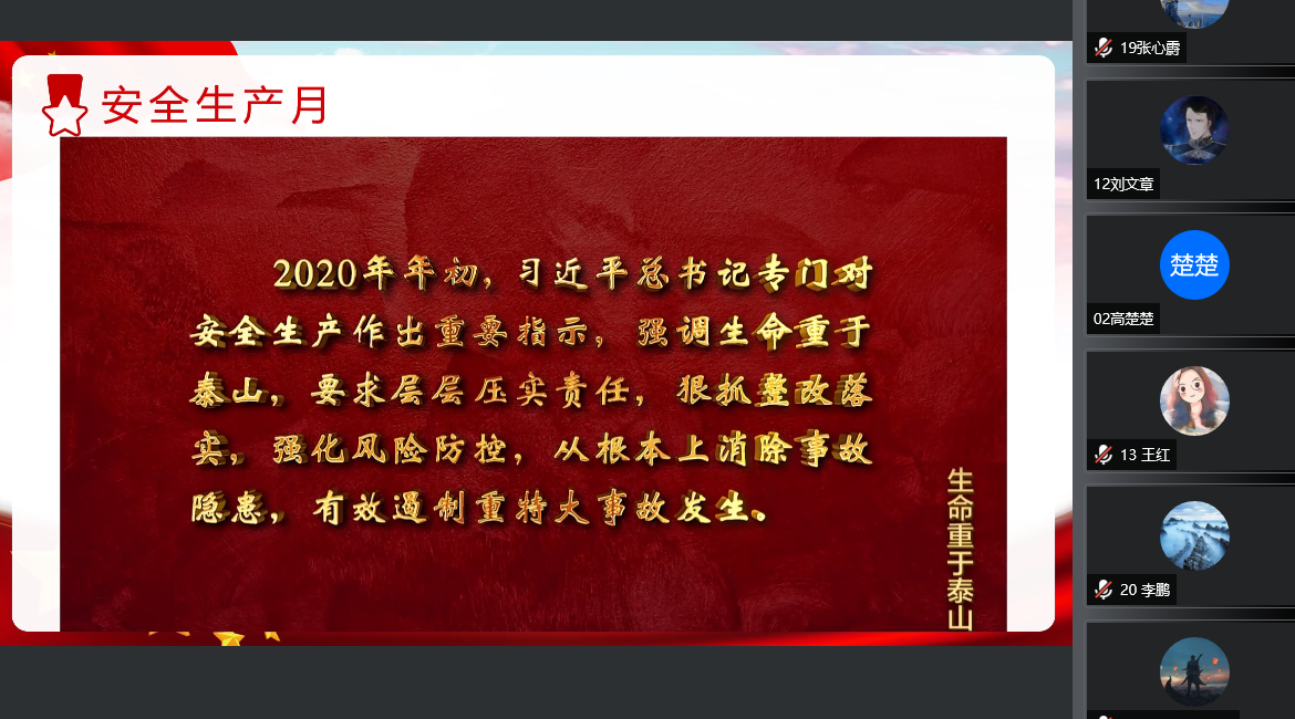 博材料支部组织党支部成员进行“安全生产月”线上学习分享活动,学习中共陕西省委办公厅,陕西省人民政府办公厅印发《关于进一步强化安全生产责任落实防范遏制重特大事故的若干措施》的通知,共同观看安全生产专题片。支部党员刘丹结合日常实验,分享在实验过程中遇到紧急情况的处置和日常实验安全注意事项,表示在开展实验的过程中,每个人一定要严格遵守实验规范操作,认真学习实验安全知识。大家就实验安全、人身财产安全等话题展开研讨交流。