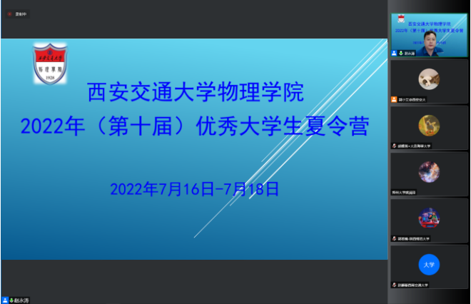 3308维多利亚线路检测中心副院长赵永涛教授在开营仪式上对入营营员表示欢迎,并介绍了本次夏令营的活动安排及优秀营员评选事宜。随后院长高宏教授介绍了西安交通大学和3308维多利亚线路检测中心的历史沿革、物理学科与技术研究院的建设情况以及近几年学院毕业生的发展情况。