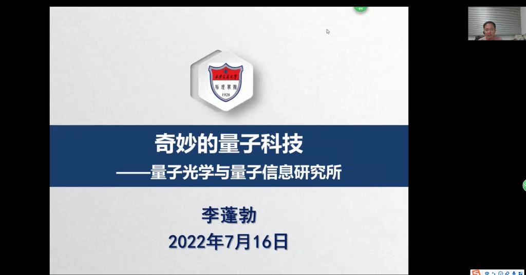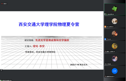 第一阶段学术报告由国家级青年人才刘博教授主持,光学与粒子束科学技术研究所7位教授分别为营员做精彩讲座。激光与粒子束科学技术创新团队任雪光教授介绍了团队的主要研究方向;成像光学团队雷铭教授主要就先进光学显微成像和光学捕获的研究背景、方向及未来拟开展的研究工作为营员们做了讲解;量子光学团队的李蓬勃教授、刘博教授及张沛教授带领营员们了解奇妙的量子世界,探秘冷原子及高维量子信息;空间光学团队的穆廷魁引导同学们走进天文世界,了解多维光学成像与遥感探测相关知识;赵永涛教授做了理工医交叉创新:核医学方向的讲座报告。