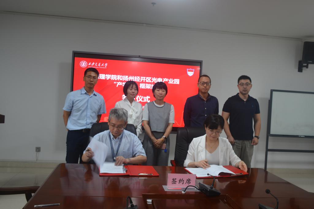 为了进一步深化合作,学院与扬州经开区绿色光电产业园签订了产学研暨人才引进合作项目框架协议。