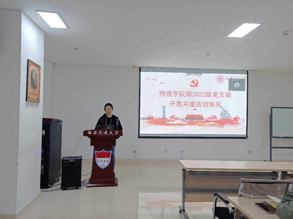 其次由支部副书记赵瑞欣同志介绍了与友邻五所高校基层党支部的共建情况,并就各高校的精神文化与传承进行了深度解析。陕西师范大学的红烛精神是为人师表、无私奉献的生动写照;空医大的“两华”精神充分彰显了党员在危难时刻舍生忘死、一切为了人民的高贵品质;“艰苦奋斗、自强不息、求真务实、爱国为民”的西电精神激励着一茬荐西电人创造了一个又一个辉煌业绩……赵瑞欣结合支部实际明确了抓建思路:一是坚定理想信念,强固政治忠诚品格;二是加强组织建设,发挥战斗堡垒作用;三是坚持党建引领,党建业务深度融合。