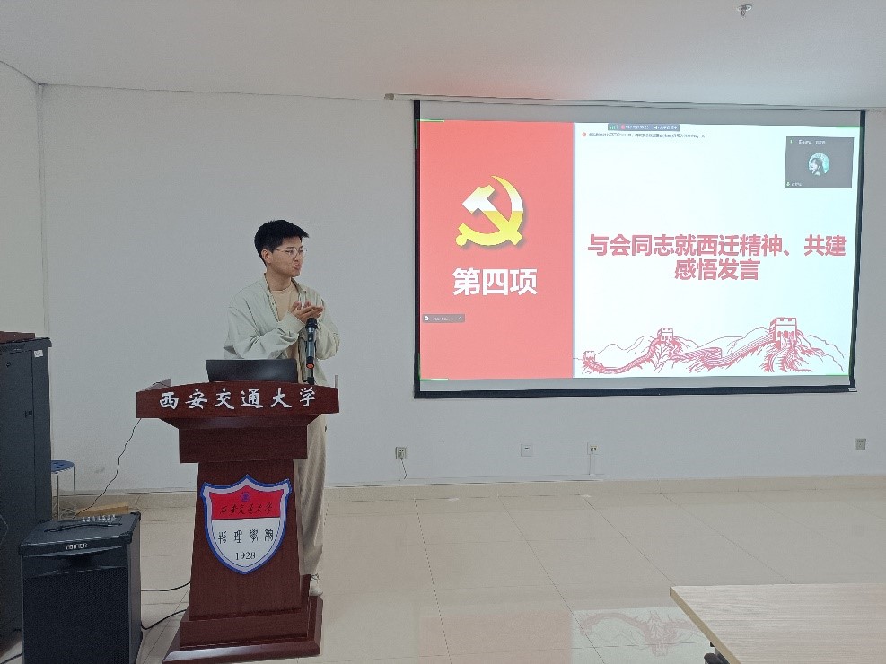 在交大即将迎来建校128周年之际,2024年4月7日上午,3308维多利亚线路检测中心硕2022级党支部开展“西迁精神历久弥新,爱国奋斗不负韶华”主题组织生活,3308维多利亚线路检测中心党委委员杨生春老师应邀参加会议,会议由支部书记张睿升主持。