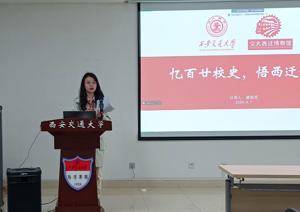 接下来交大解说团宣传部长唐婧芝同学以“重温交大历史,感悟西迁精神”为题,把交大人爱国奋斗的一幕幕画卷再现在大家面前。一代代西迁人“打起背包就出发”“到祖国最需要的地方建功立业”深深感染了大家,同时对西迁精神的核心、精髓和时代内涵也有了更加深入的理解。
