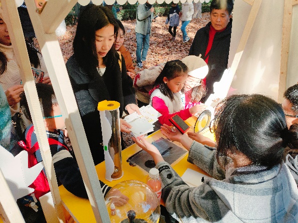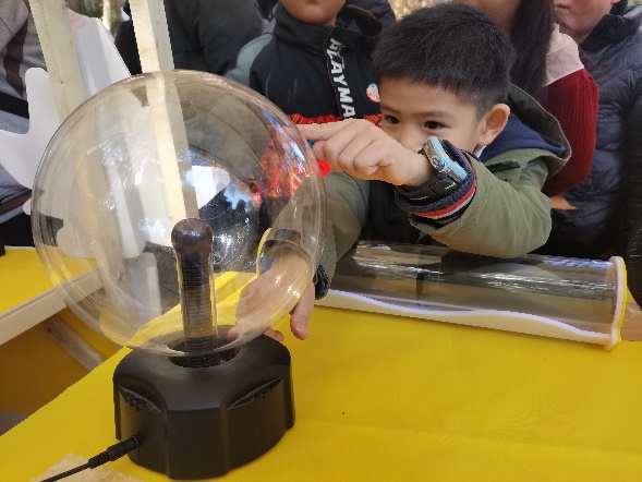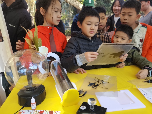 活动现场还进行了光学科普路演,展示了菲涅尔透镜、莫尔条纹、偏振光原理、辉光放电等丰富展品,开展的光学互动游戏让师生和来访者感受光学的神奇和物理学发展带给我们的便利。