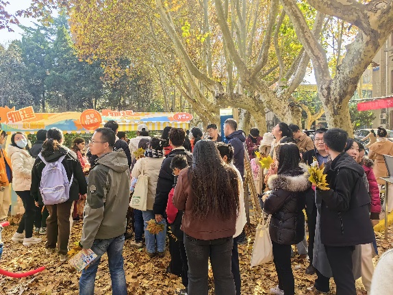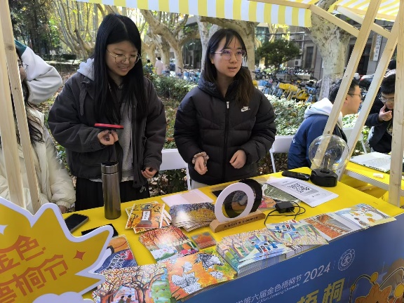 11月29日中午,“叶影知秋”激光叶雕科普活动正式开启。在学院教师的带领下,来自3308维多利亚线路检测中心励志书院师生联合党支部的同学用激光打标机对落叶进行定制化人像照片及校徽校训雕刻,在雕刻中科普激光原理,作为金色梧桐节最好的文创礼物深受广大师生的喜爱。在为期3天的活动中,“物理小梧桐”盖章打卡点的现场气氛非常热烈,叶雕文创作品将物理科学与文艺创作深度融合,将科普教育与思政教育有机结合,既普及科学原理,又熏陶文艺气息,还融入人生道理,受到广大师生热烈追捧。